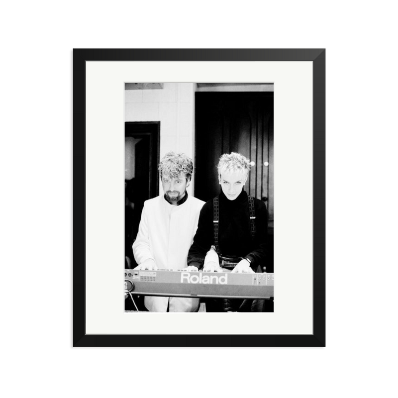 Annie Lennox and Dave Stewart of Eurythmics for the "It's Alright (Baby's Coming Back)" video, 1985.