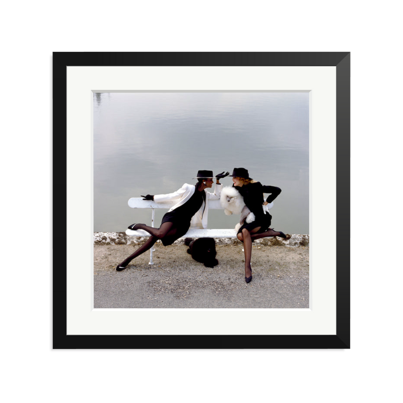 Somali-American model and actress Iman and American model Jerry Hall in Paris at the French Collections, photographed for French Vogue, Spring 1982.